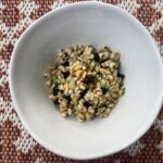 Place the millet in a bowl and top with spinach, diced pears, walnuts, goji berries, and sesame seeds.
