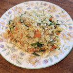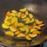 Heat your wok or frying pan and add the oil, garlic and salt.